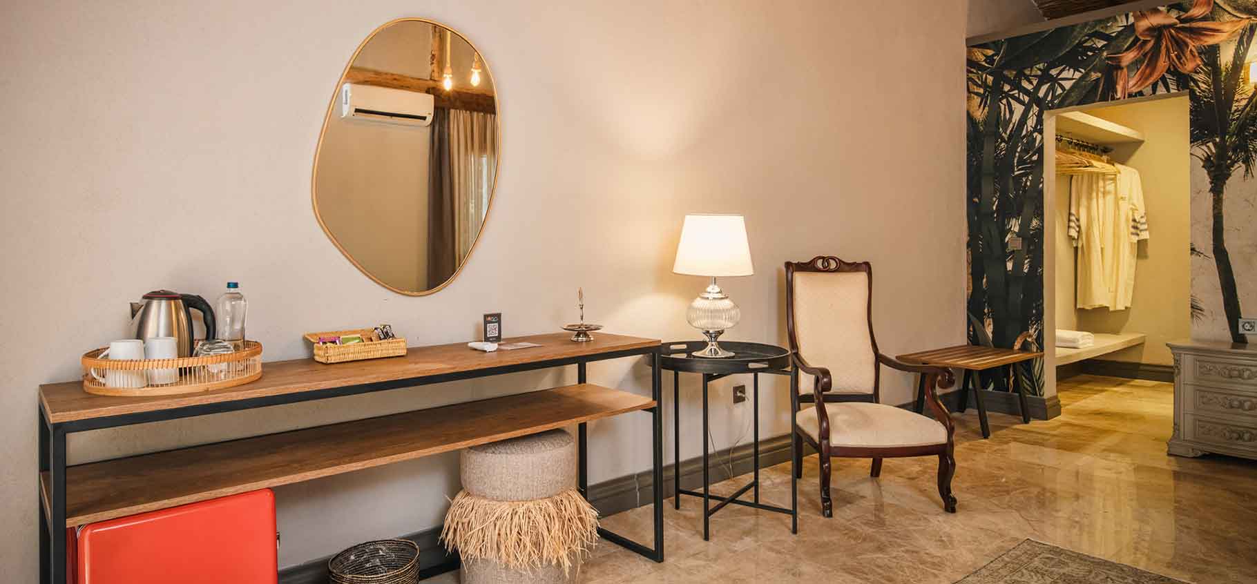 Oda Olanakları: havuz manzarası, havuz havluları, klima, gardırop, sineklik, özel giriş, kanepe, oturma alanı, çalışma masası, yatak yanında priz, hipoalerjenik yastık, özel teras.1 Banyo: odanın içinde özel.