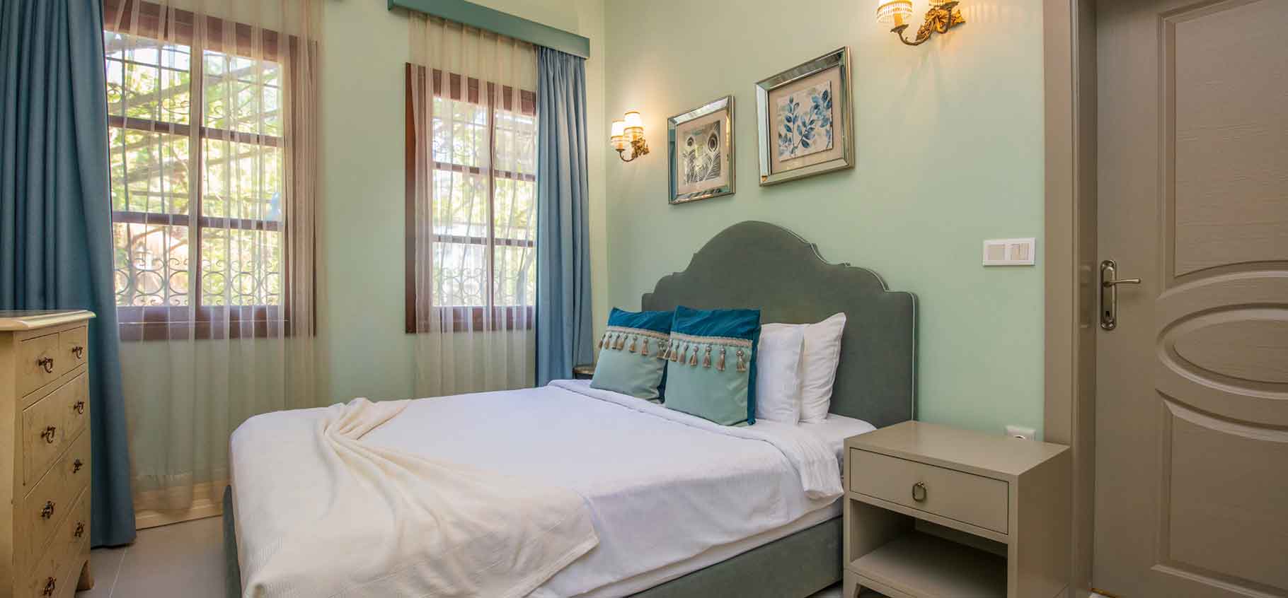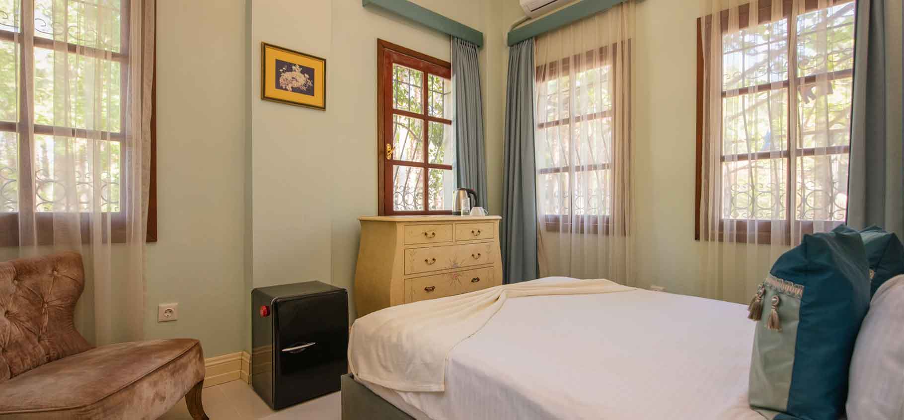 Oda Olanakları: bahçe manzarası, havuz havlusu, klima, gardırop, yatak yanında priz, hipoalerjenik yastık. 1 Banyo: odanın içinde özel.
